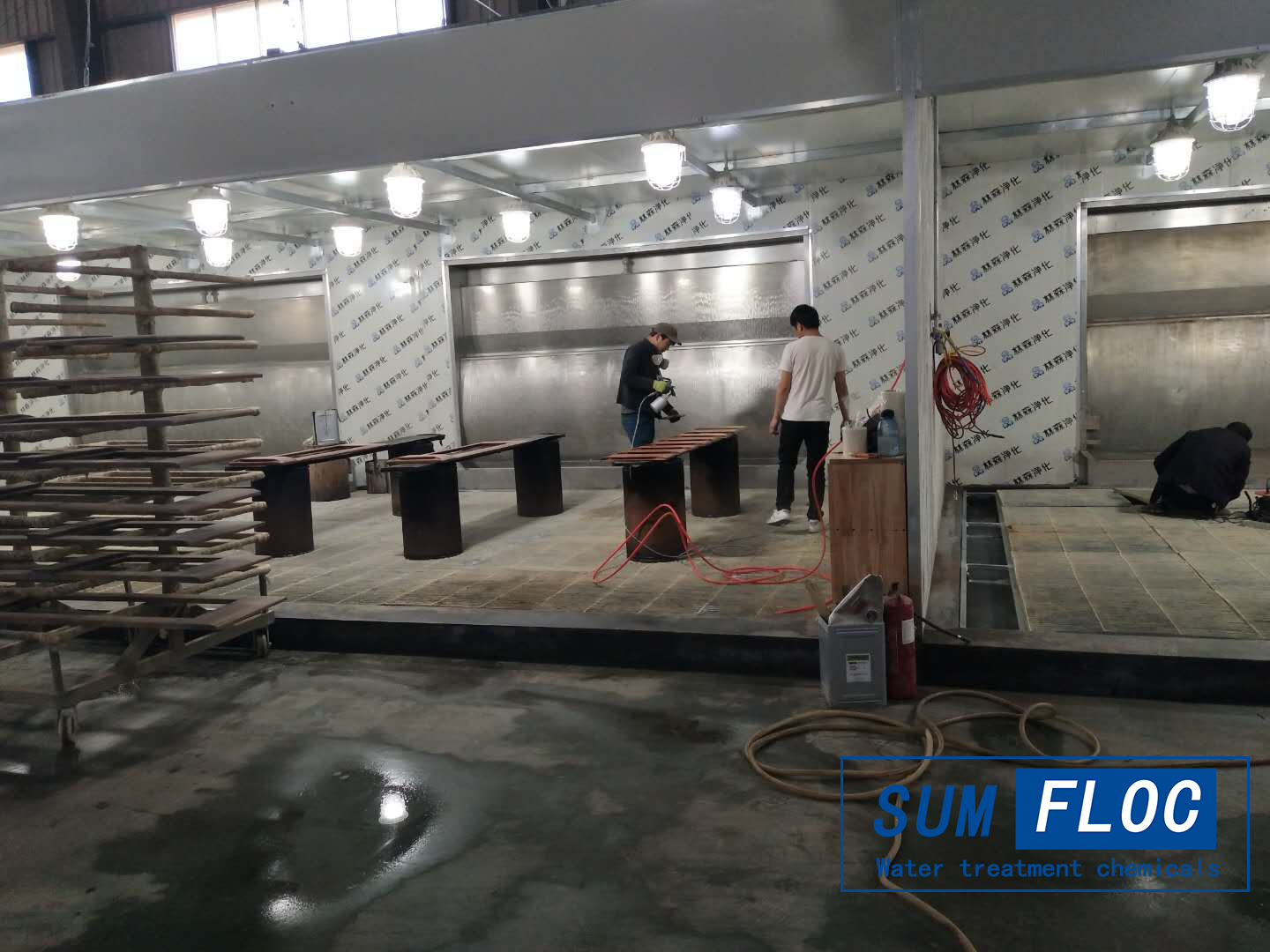 健身運動器材制造噴漆一般可分為金屬材料噴涂及復(fù)合材料碳纖維噴涂兩種。噴漆污水處理藥劑咨詢13913111655復(fù)合材料碳纖維噴涂有底漆、色漆、表面透明漆,噴一層,烘烤;而在噴漆工序中,通常采用水簾式噴漆房,水簾設(shè)備需要再水循環(huán)中工作產(chǎn)生大量的噴漆廢水;這些噴漆污水處理需要噴漆污水處理藥劑(又稱AB劑)